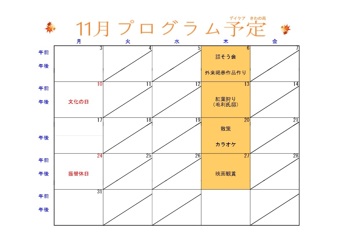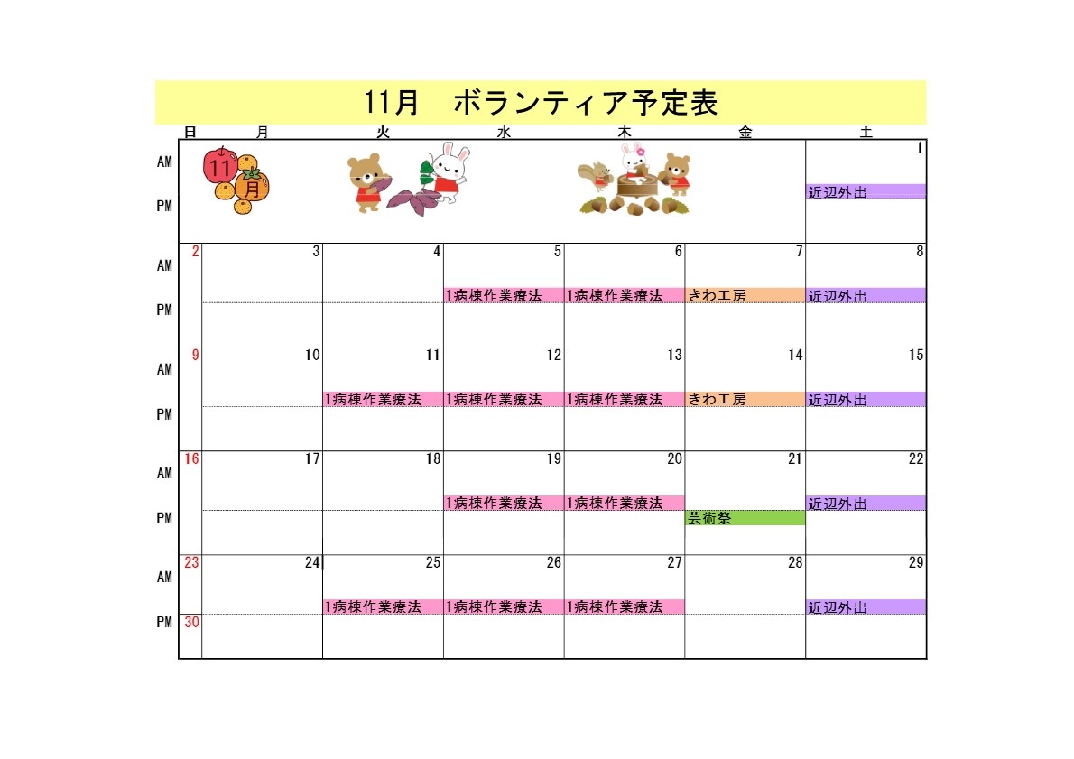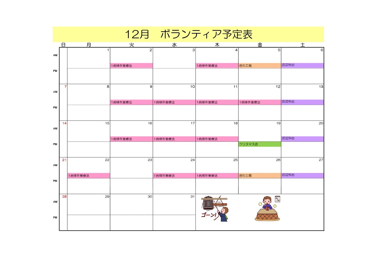 病棟の行事等に合わせて12月のボランティア予定表に更新いたしました。(R7.12.1更新)